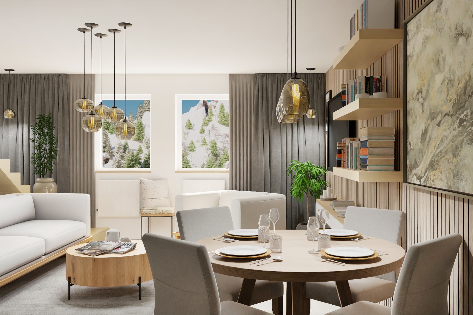 Interiéry jsou tvořené podle návrhu bytového designera, který byl do projektu zapojen již ve fázi tvorby stavebního řešení a dispozice bytů. V ceně prodávané bytové jednotky je konzultace s bytovým designérem a návrh dalších částí interiéru podle potřeby klienta.